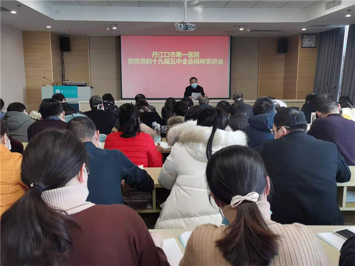 12月21日下午,医院党委在二十五楼会议室召开学习贯彻党的十九届五中全会宣讲会。全院中层以上干部参加了会议。 会上,院党委书记曹通以《深入学习十九届五中全会精神,认真谋划好医院“十四五”宏伟蓝图》为题,围绕党的十九届五中全会精神的重大意义,新发展阶段面临的新挑战,2035年基本实现社会主义现代化的远景目标,以及“十四五”时期经济社会发展遵循的原则和主要目标进行了详细的解读。