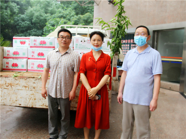 2020年6月16日上午,蒙蒙细雨中,一辆载满爱心桃的大卡车,从习家店农博园缓缓驶入了丹江口市第一医院。