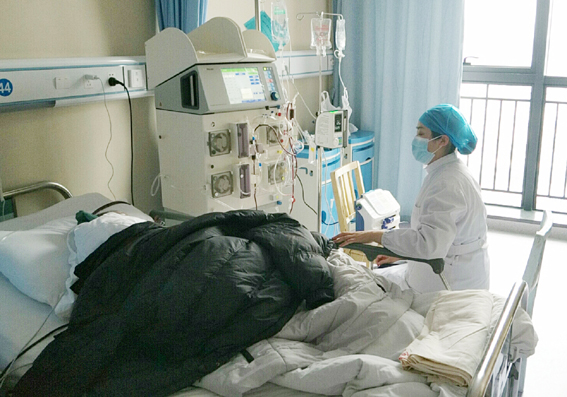 针对这种情况,泌尿科专家团队为该名患者制订了利用枸橼酸抗凝法床旁CRRT的治疗方案。利用枸橼酸抗凝技术大大解决了患者体内出血不能利用肝素抗凝的弊端,可以进行长时间的血液净化,同时CRRT长时间的治疗使血流动力学更加稳定,让患者的安全得到保障。在整个治疗过程中,科室血液透析室的护理团队也积极配合,安排专科骨干力量进行轮流排班,严密观察患者反应。一次CRRT治疗持续运行8小时,从这位瘦弱的患者体内脱出了3.5公斤的废液,患者凝血功能未见异常,无继发出血,生命体征平稳,内环境平衡,各项指标均在正常范围,患者精神状态较前有明显改善。