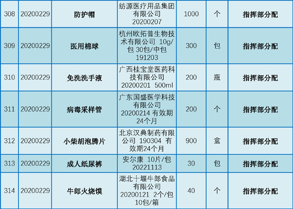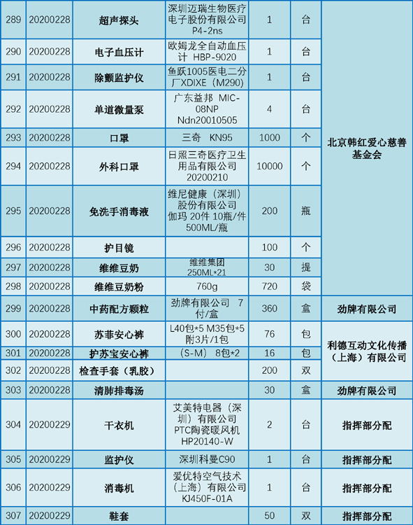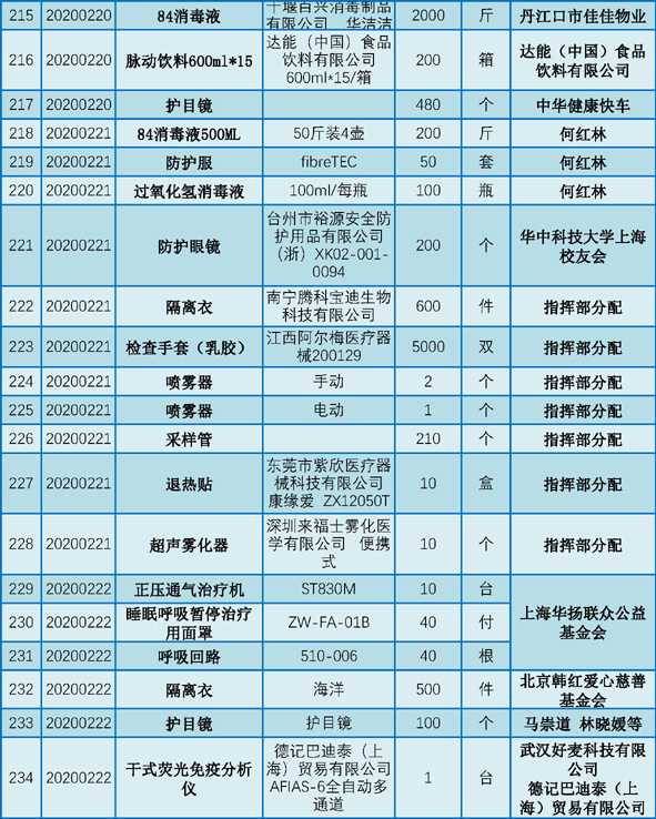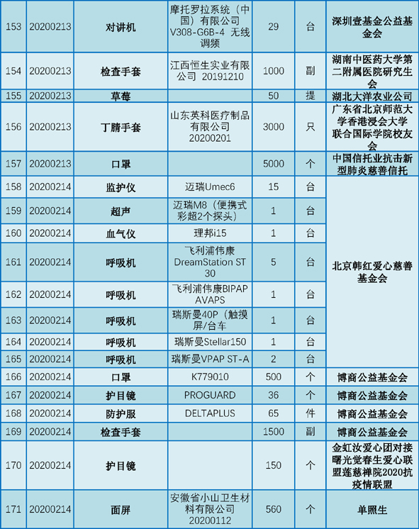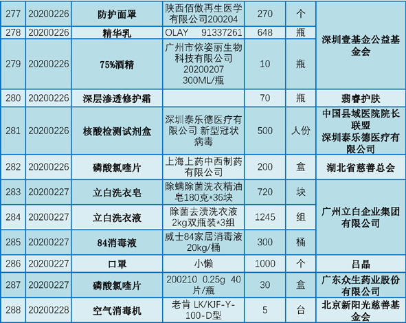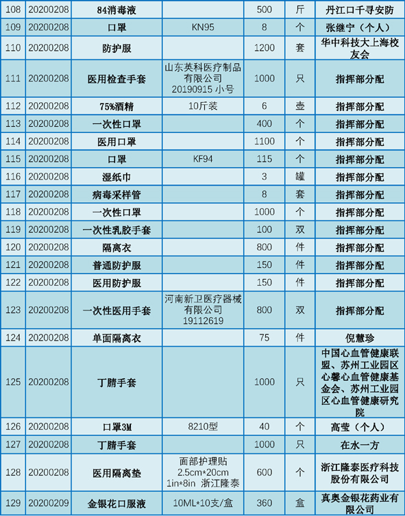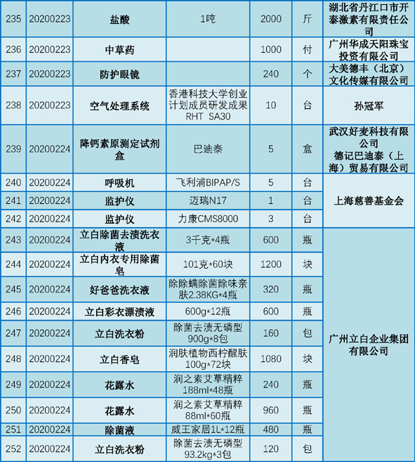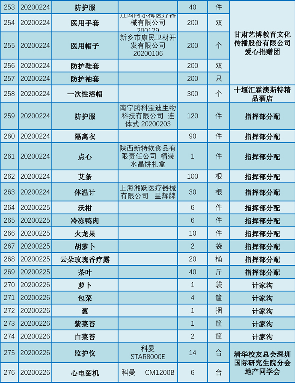 现将2020年1月25日至2月29日期间向我院捐赠的物资予以公示,接受社会和公众监督。