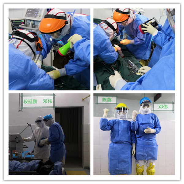 事后,当问及邓伟一个人冒着被感染的风险就不害怕吗?他不好意思地说:“其实,最开始的时候还是有点担心害怕的,怕呛咳出的飞沫,气溶胶,或者是直接触病人,自己被新冠病毒感染。但后来我们危重组的组长、危重科胡健主任,感染科付红彦主任,我的师兄心内科段延鹏医生以及感控办王秀芳主任再三鼓励提醒,并指导我做好三级防护后,我就不害怕,也不担心了,觉得有这么多人关心我,而且做好了防护,我一定不会有事的。”说到这里,邓伟给出了一个甜甜的微笑,“等到正式开始操作时,也就没什么别的想法了,也顾不上去担心害怕了。”