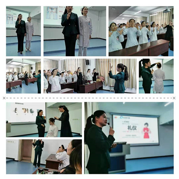 段老师分别从护士的仪容仪表、行为礼仪、接待礼仪、引导礼仪及规范行为等内容,以现场示范讲解、互动提问等多种形式对全体医护人员进行了正确的坐姿、站姿、行姿等基础礼仪的培训,并针对护理人员平时未注重到的细节问题予以纠正,使护理人员学会如何以优雅的形象、温和的语言、真诚的笑容、娴熟的技术开展规范化、人性化的护理工作,以树立良好的职业形象。培训现场护理人员积极参与、热情高涨,对自身的不足和瑕疵认真纠正,努力掌握护士礼仪的应用技巧。