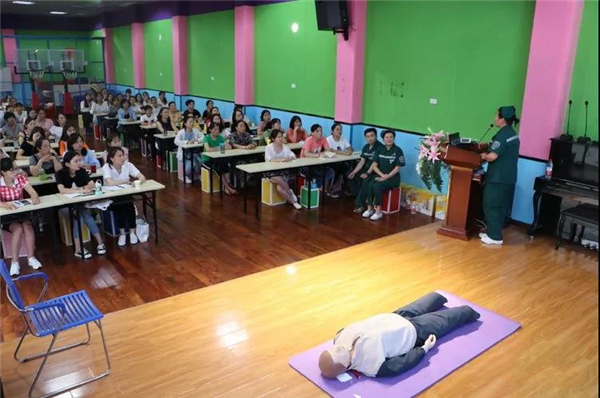 8月27日下午,我院急诊科受邀为中心幼儿园教职工开展了幼儿呼吸道异物卡喉(海姆立克急救法)、心肺复苏、烫伤、小儿高热惊厥、鼻出血、外伤应急处理等急救知识培训。