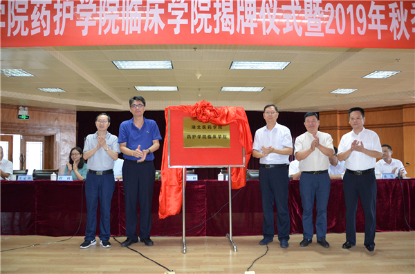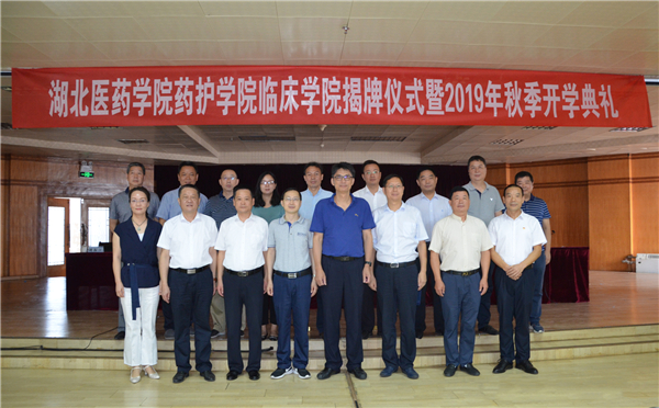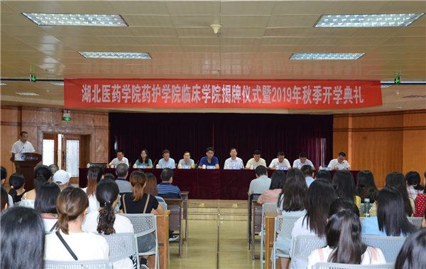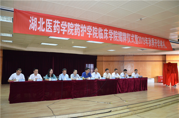 9月3日上午,湖北医药学院药护学院临床学院揭牌仪式暨2019年秋开学典礼在丹江口市第一医院内科大楼19楼举行。湖北医药学院党委副书记、校长李和、丹江口市委副书记、政法委书记陈武出席仪式并为湖北医药学院药护学院临床学院揭牌。丹江口市卫健局、市第一医院中层以上干部及全体教师,2017级护理本科全体学生参加揭牌仪式。
