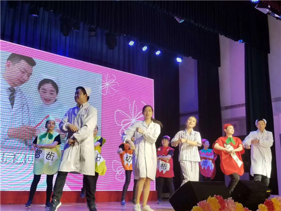 大合唱《中国 中国 鲜红的太阳永不落》拉开了晚会的序幕,医院300多名文艺才俊经过一个多月的精心排练,为观众献上了舞蹈《印度风情舞》、拉丁舞《映山红》、歌伴舞《暗香》、《护牙总动员》、旗袍秀《江南之恋》和相声《跳大神》等精彩节目。演唱优美动听,舞蹈曼妙多姿,展示了我院职工多才多艺、健康向上的精神风貌;自创的诗朗诵《我们意气风发丹医人》讴歌了该院近年来跨越发展新成就,褒扬了医务人员敬业爱岗、心系病人的无私奉献精神;、小品《护士招聘》更展现了护士姐妹积极向上、青春洋溢的精神风貌;情景剧《急诊室的故事》、《检验协奏曲》和《无影灯下的天使》通过情境再现工作片断向我们展示了不同临床工作的点滴与艰辛。从平凡中见真心,从平凡中见奉献。最后整场晚会在歌伴舞《不忘初心》中圆满结束。