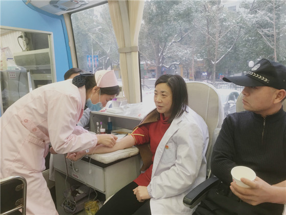 为确保临床用血,做好冬季备血工作,25日,十堰市中心血站献血车开进丹江口市第一医院,该院百余名医务人员挽袖献爱心,为寒冷的冬天增添了一分暖意,也展现了新时期医务人员无私奉献的风采。(瞿夏璐)