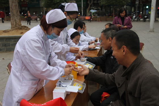 活动现场,内分泌科的十余名医护人员忙着为患者和市民量血压、测血糖、答疑,并耐心地向他们讲解什么是糖尿病、糖尿病的高危发病人群、糖尿病的危害及防治等知识。据不完全统计,当天共有180多名患者和市民参加了活动,免费诊疗和咨询近150人次,测血糖、血压300余人次,发放健康宣教资料300余份。此次活动的开展对提高市民对糖尿病的认识和重视,降低糖尿病发生和危害将起到积极的作用,受到当地群众的一致好评。(瞿夏璐 吴鸣)