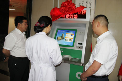 5月23日,丹江口市第一医院与丹江口市农商银行合作的“银医通”自助服务系统正式启动运行。今后,在该院看病患者只要持有二代身份证或医院就诊卡,就能在分布在院内各层的自助终端上完成挂号和看病缴费,无需再排长队。