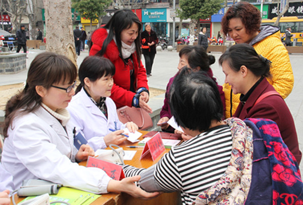 为庆祝第107 个“三•八”国际妇女节的到来,倡导健康生活方式,增强女性自我保健意识,唤起社会各界对女性健康的关注。3月8日上午,丹江口市第一医院组织妇科、产科、糖尿病专科、中医科等资深专家,在医院对面小广场进行健康公益义诊活动,现场免费为广大女性朋友进行疾病诊断、健康咨询、测量血压、发放健康处方及宣传资料。(吴鸣)