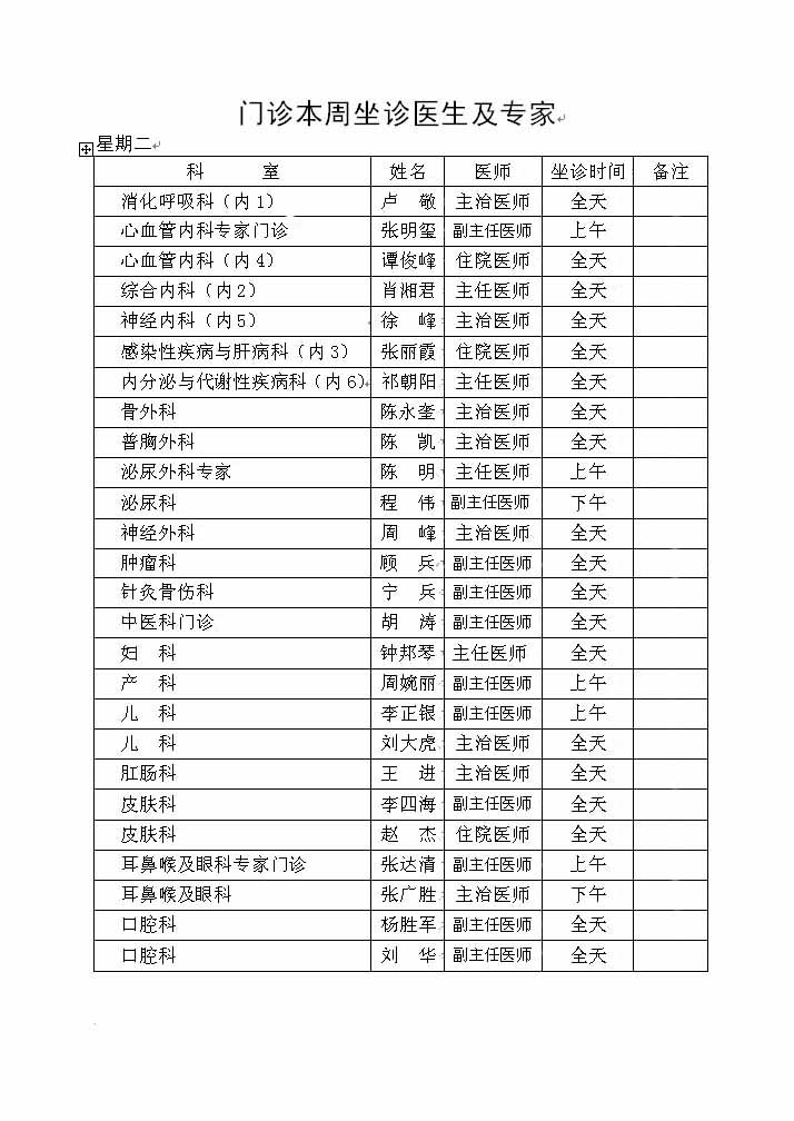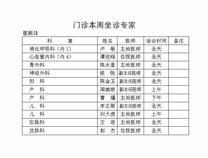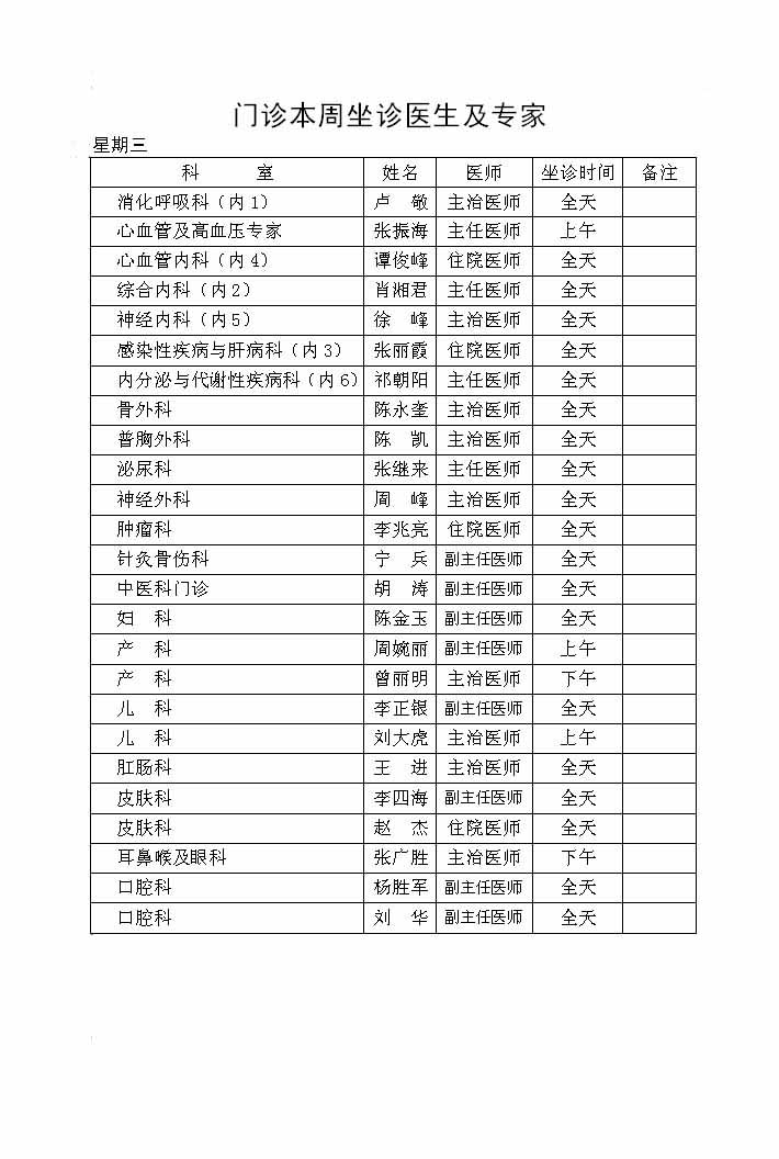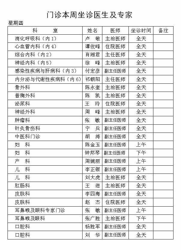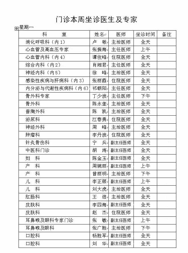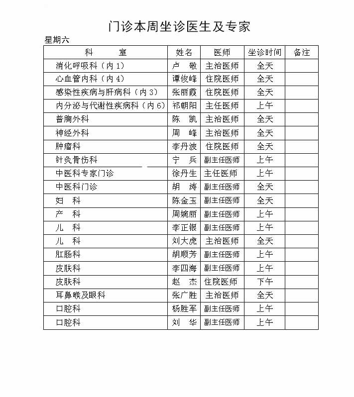 本周门诊坐诊医生及专家安排如下,如有疑问请咨询丹江口市第一医院门诊部 咨询电话 0719-5225912