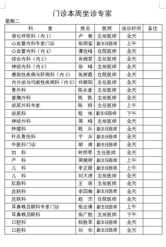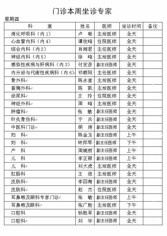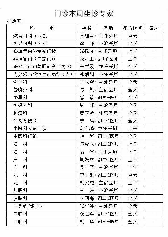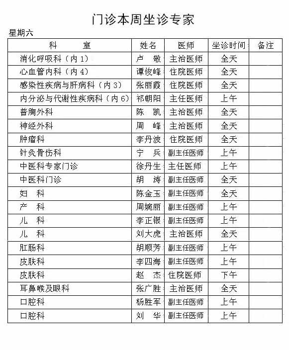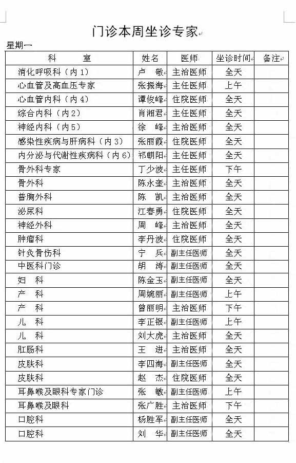 本周门诊坐诊医生及专家安排如下,如有疑问请咨询丹江口市第一医院门诊部 咨询电话 0719-5225912 欢迎来电咨询,您的满意将是我们最大的动力!!