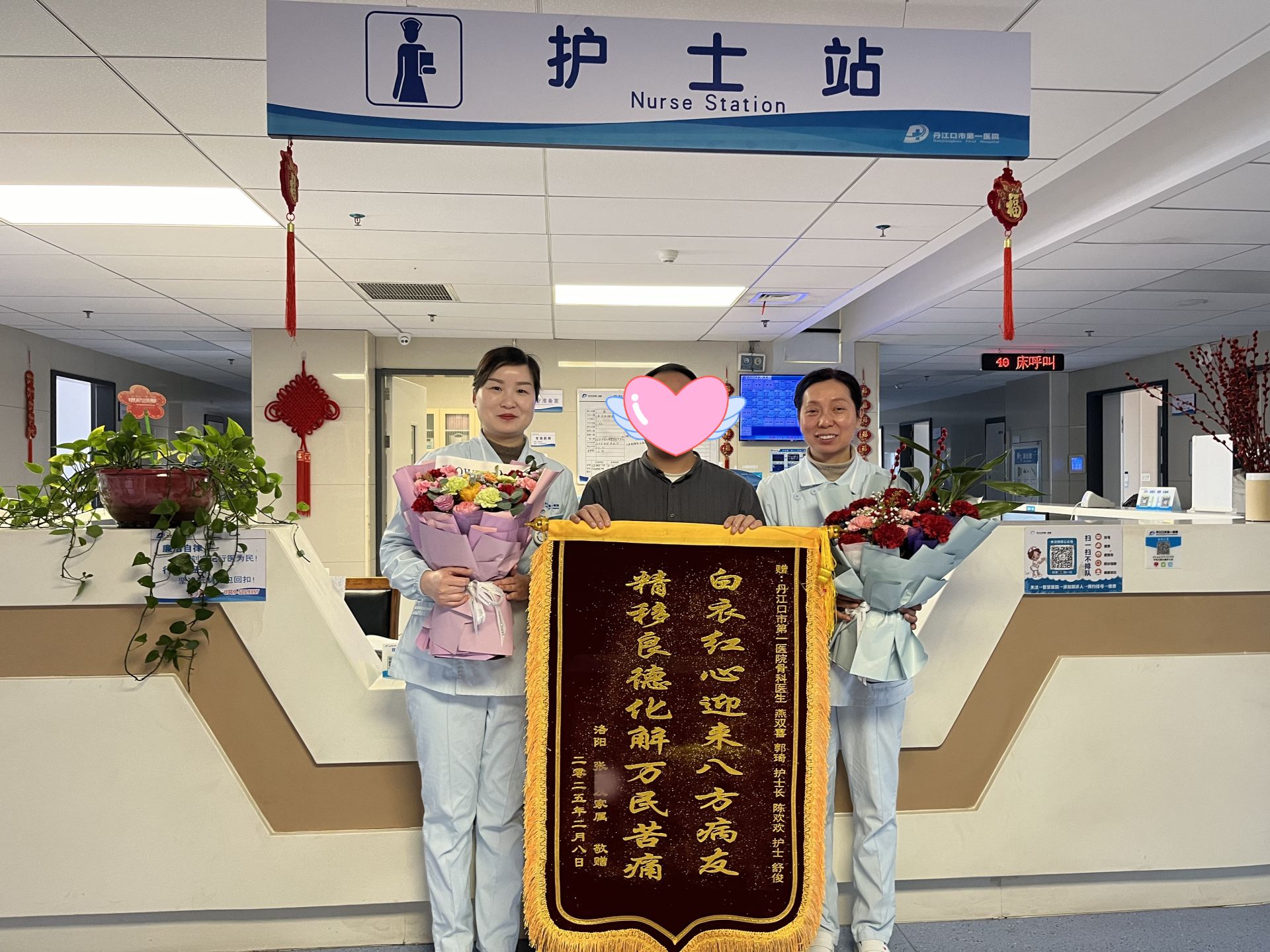 “感谢你们,感谢丹江口市第一医院,欢迎到洛阳做客!” 2 月 8 日上午,在市第一医院骨I科(关节·创伤骨科)病区,来自河南洛阳的游客张先生手拿一面写有“白衣红心迎来八方病友,精移良德化解万民苦痛”的锦旗,代表一家4口感谢医院对他们的专业救治和精心护理。
