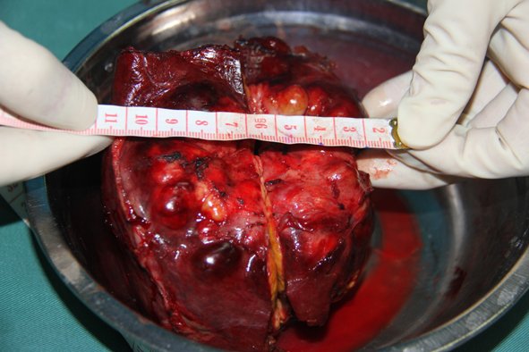 近日,市一医院普胸外科成功实施一例肝尾叶合并肝右叶肝癌切除手术,顺利为一位48岁肝癌患者切除了大小约13×11cm的巨大肝癌肿瘤。该手术的成功开展标志着市一医院普胸外科在肝胆肿瘤手术方面的技术水平又上了一个新的台阶。