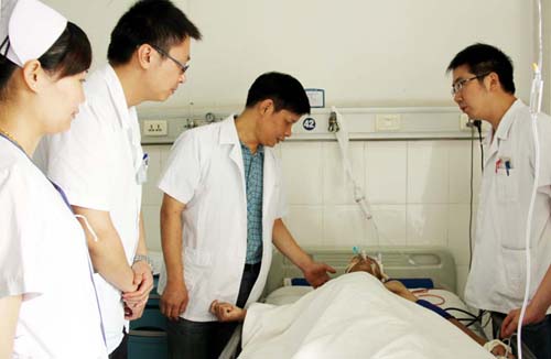 神经外科主治医师周锋介绍:男子接入院后,CT检查示右侧额、颞、顶、枕部大面积硬膜血肿,外伤性蛛网膜下腔出血,左侧枕部有一15cm左右不规则头皮伤口,右侧顶部发现一4cm伤口,被诊断为重型颅脑损伤。为了抢救男子生命,经请示医院领导,脑外科连夜为男子进行了开颅探查和血肿清除术。