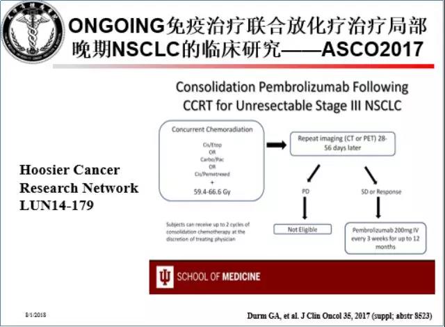 对于同步放化疗后的免疫治疗,无论是PACIFIC研究,还是霍西尔癌症研究网络LUN14-179均显示出了很好的治疗前景。