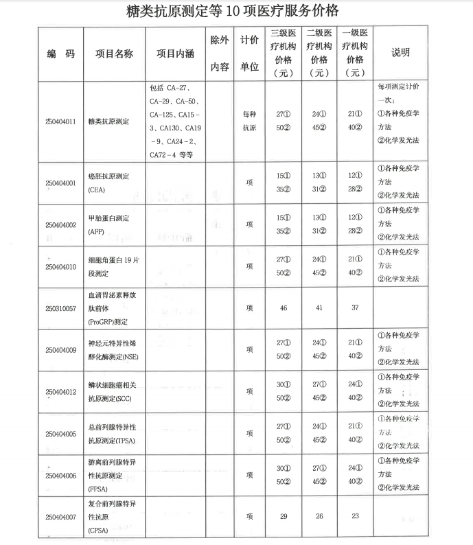 十医保发【2024】31号关于调整糖类抗原测定等10项医疗服务项目价格的通知