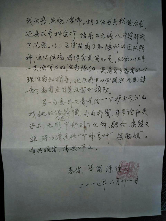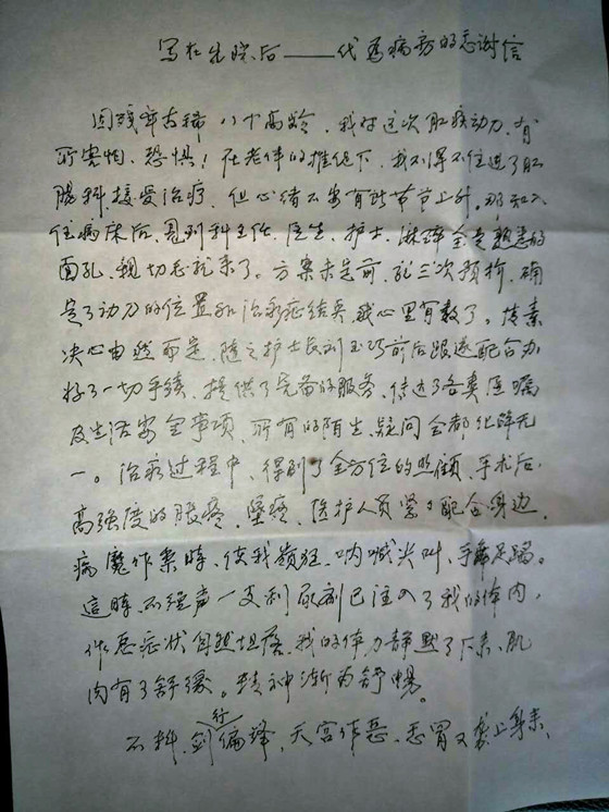 写在出院后——代为病房的感谢信