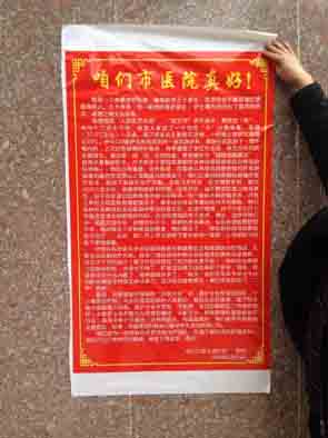 最后,我要感谢护理部的“白衣天使”们,潘护士长带领的团队,个个都是好样的,与太和医院的医护人员相比,她们无论在医德、医疗技术等方面都毫不逊色。潘护士长不怕脏、不怕臭、亲自为我的肛门帝褥疮治疗;主管护士李丹敏为治疗我的褥疮,不耻下问,跑到其他科室请教治疗方法,真是令我十分感动;还有何医生、陈晶晶医生,他们虽然不是我的主管医生,但是,在值班的时候他们都非常负责任的关心我。