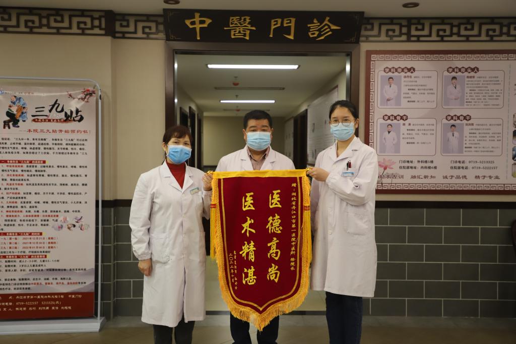 照着锦旗上面的落款“襄阳孙女士”,徐院长回想起来这位孙女士的治疗经历。孙女士慕名找到徐院长的时候,已被反复低烧困扰多年,去了很多医院,经过很多治疗都没有效果。一次机缘巧合,经人介绍来到丹江,慕名找到正在我院中医专家门诊坐诊的副院长徐丹生,通过把脉问诊和辩证分析,徐院长认为该名患者是内分泌系统出现了问题,在给病人开出对症的中药方剂的同时,调整心理状态,提醒孙女士不要过度关注体温的变化。孙女士在遵医嘱喝了两个月的中药后,低烧症状消失,各项指标正常;惊喜之余,准备亲自登门致谢,面对当前严峻复杂的疫情防控形势,徐院长劝其暂缓来丹。于是就有了开头的一幕,通过快递锦旗来表达对徐丹生院长药到病除、医术精湛的感谢。